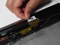 Remove the flat flex cable by first lifting the hinge then pulling the hinge away from the connector.
