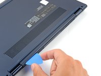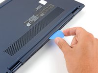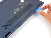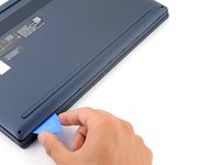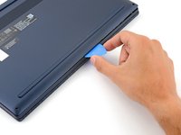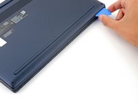 Insert an opening pick between the lower case and the chassis at a hinge corner.