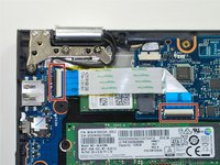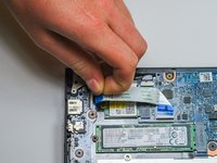 Disconnect both ends of the two blue ZIF (zero insertion force) connectors in the upper left corner by gently flipping the black tabs on the connector and pulling up and away from both ends of the connectors.
