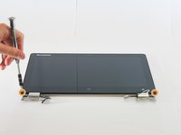 Remove the LCD hinge cover by gently prying the pieces with a plastic spudger and lifting the hinge cover up and out.