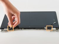 Pry the two side hinge covers with a plastic spudger and pull them up and away from the LCD.