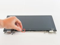 Disconnect the white MIC board connecter located near the center of the LCD bezel by pulling it out to the left.