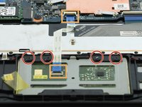 Remove the four 4mm Phillips #1 screws holding the touchpad onto the laptop.