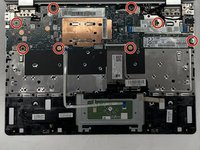 Use a Phillips #000 screwdriver to remove the eight screws securing the motherboard, Wi-Fi card, and SSD card.