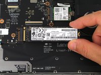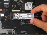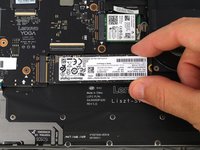 Use a Phillips #00 screwdriver to remove the 2.7 mm screw that is holding down the SSD card.