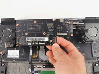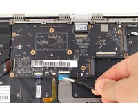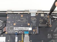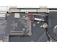 Use a spudger to pry up the press fit connector on the right side of the motherboard.