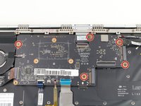 Remove the five 3.6 mm screws from the motherboard using a Phillips #00 screwdriver.