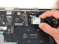 Using a Phillips #00 screwdriver, remove the 2.2 mm screw holding down the Wi-Fi card.