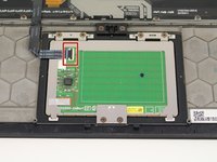 Use a spudger to lift the hinged black tab of the ZIF connector on the trackpad.