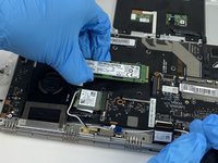 Pull the SSD stick directly to the right until it shifts out of place to remove it.