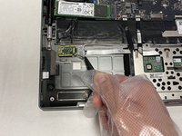 • Lift and remove the fingerprint reader from the laptop using the angled ESD tweezers.