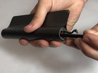 With the hinge removed, locate the end with no wires coming out. Peel back the black screw cover with a pair of tweezers and remove the 3mm screw with a PH00 screwdriver.