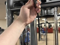 Pull the cable up through the Triceps Pushdown.