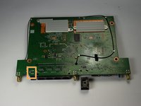 After you have melted and removed the solder, flip the mother board around and identify the connecting points of the power port.