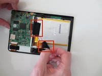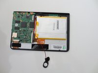 Using the spudger, carefully peel the battery off of the tablet panel.