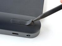 Heat an iOpener and lay it on the left rear plastic foot for about two minutes.