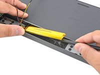 Insert the flat edge of a spudger underneath one of the short edges of the battery.