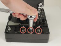 Remove the eight 8.6 mm long 1.5 mm hex screws from the label plate.