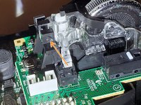 Remove the black pin that holds the scroll wheel to the motherboard.