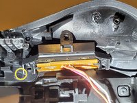The assembly is held in by some clip-in action from the screw posts on the top shell and screw holes on the assembly. The next step will explain in detail how to pop it out.