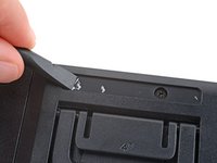 Use the flat end of a spudger to scrape up and remove any chunks of adhesive from the foot recesses.