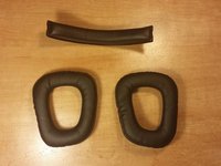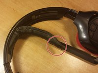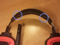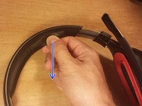 Pinch the edge of the headband and pull away from the head set while holding it down.