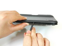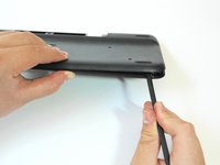 Wedge the flat end of the spudger between the back panel and front panel.