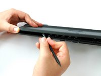 Slide the flat end of the spudger from right to left to pry the two panels apart.