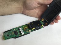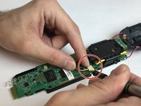If glued to the back of the guard, use the metal spudger to carefully pry the battery off.