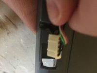 Carefully nudge the connector out of the hole in which the cable enters the keyboard's chassis.