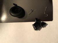 - Add the left spring with its rectangle corner, one end of it to the wheel holder, for the other end there is a small hole on the left part of the plastic piece.
