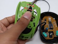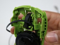 Insert a spudger between the left side of the scroll wheel and the housing. Then, rotate the spudger clockwise, so that it is pushing the center of the housing away from the wheel. Do this while pressing down on the wheel with your thumb.
