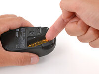 Press down on the battery cover with your thumb and slide it away from the mouse to unclip it.