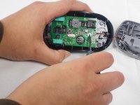 The pads on the underside of the mouse hide the screws. Remove these first. You may need to use your fingernails or a prying tool.