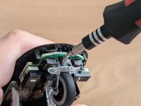 • Use a pry tool to unclip the scroll wheel from the PCB by pushing the clip out of the holder.