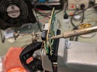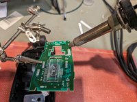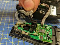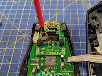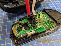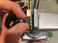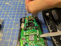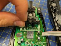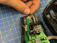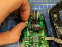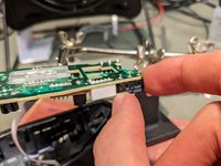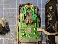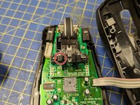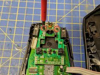Remove the last screw holding down the circuit board (next to the hole left by the scroll wheel).
