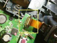 Lift the latch up and pull flex circuit out of connector. Detach tracking ball sensor.