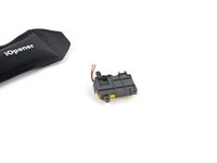 Insert each arm of a pair of pointed tweezers into the small cutouts on the top of the battery connector socket.