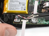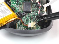 Use a pair of tweezers (or the point of a spudger) to lift the wheel assembly cables out from under their clip on the battery housing.