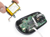Use a pair of tweezers or a spudger to remove any large chunks of leftover adhesive. Thoroughly clean the bottom of the mouse with isopropyl alcohol and a lint-free of microfiber cloth. Allow the surface to dry completely.
