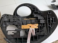 Unscrew the bottom left screw holding down the fwd/rev buttons, lifting the assembly to the side