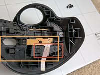 After that the connecting light indicator transmitter will fall out and the left click lever can be removed