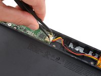 Pull the three battery cables out of their channel in the keyboard.