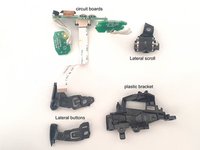 Gently press the scroll in from the outside of the mouse, pull up the inside of the piece, it can be helped with a plastic lever, but it is not necessary, all the action make it very smooth, so as not to damage the cables and the mechanism.