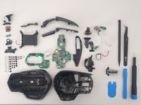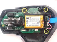 Remove the screws that hold the entire scroll mechanism and two side buttons. We also removed most of the screws that hold the right click button.