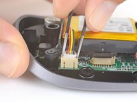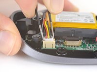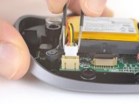 Orient your new battery so its cables route through the cutout in the corner of the housing. Press the battery firmly into place to secure it.