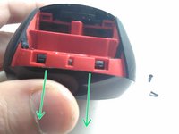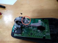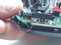 Then, place the haptic feedback arm in place by inserting it into the recess, and lining up the left of the two locking clips at the rear of the plastic housing and clipping it in place. Leave the right side unclipped at this point.