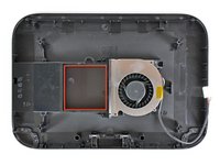 • The internal fan is attached to a nifty duct that directs the air flow across the CPU heat sink (located in the area shaded in red when the device is assembled) toward the vents on the side of the top cover.