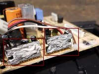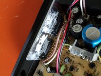 Remove the 2 screws that binds the heat sink to the metal plate of the casing. Use a #01 Philips screw driver.
