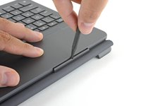 Insert the flat end of the spudger or a small flat head screwdriver into the top of the battery tray.